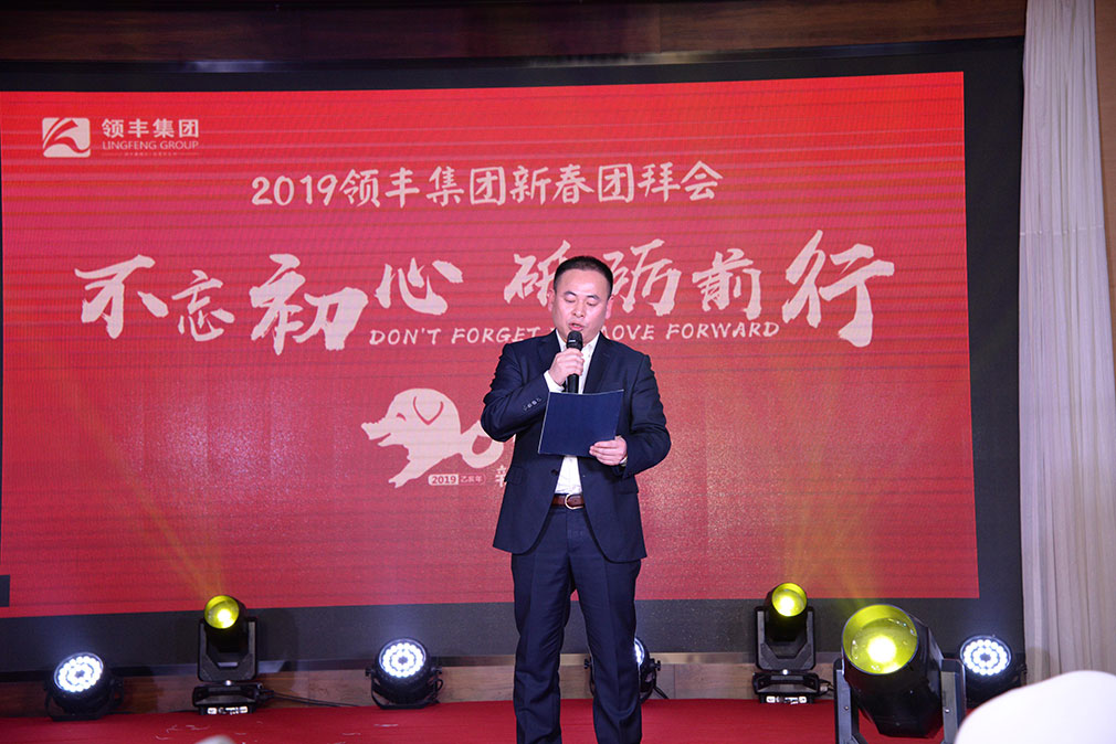 “大家晚上好!今天,我們歡聚一堂,首先我謹(jǐn)代表領(lǐng)豐集團(tuán)全體員工,向各位來(lái)賓的到來(lái)表示熱烈的歡迎,向全體員工的辛勤工作致以深深的謝意!感謝各位一年來(lái)在各自崗位上所付出的辛勤勞動(dòng),以及在工作中表現(xiàn)的敬業(yè)精神,正是因?yàn)槟鷤兊母冻觯庞辛祟I(lǐng)豐碩果累累的2018。感謝所有的合作伙伴,是您們的信任與支持幫助我們成就了精彩的2018。今天,我們有幸邀請(qǐng)到他們當(dāng)中的杰出代表,讓我們用掌聲熱烈歡迎他們的到來(lái)。感謝每一位領(lǐng)豐家人以及家屬們,是您們的堅(jiān)定支持與默默奉獻(xiàn)鑄造了領(lǐng)豐驕人的業(yè)績(jī)。”